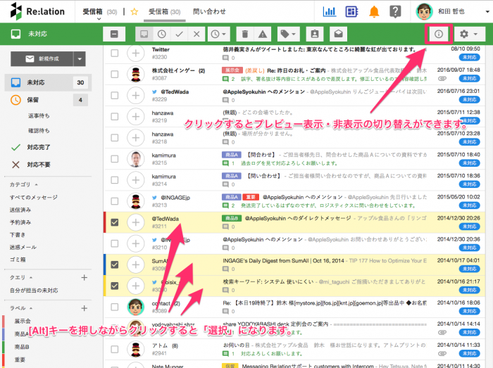 – 顧客コード - チケット一覧にて [Alt] キーを押しながらのクリックは「選択」となるようにしました。