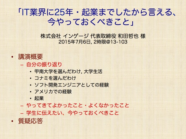 今年も弊社代表の和田が、甲南大学で講義を行います。講義のタイトルは「IT業界に25年・企業までしたから言える 今やっておくべきこと」です。